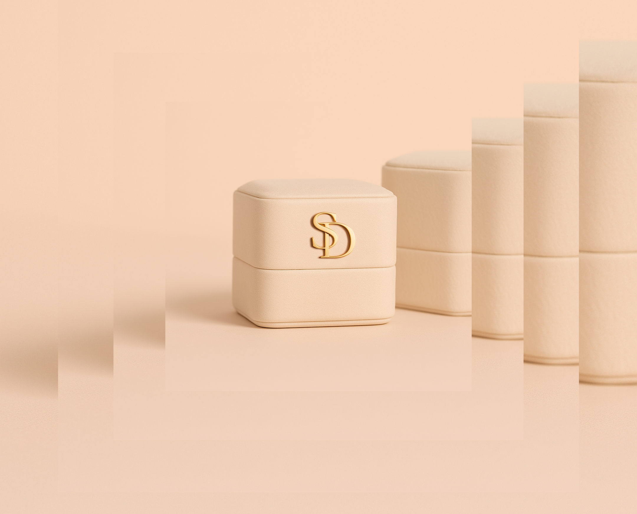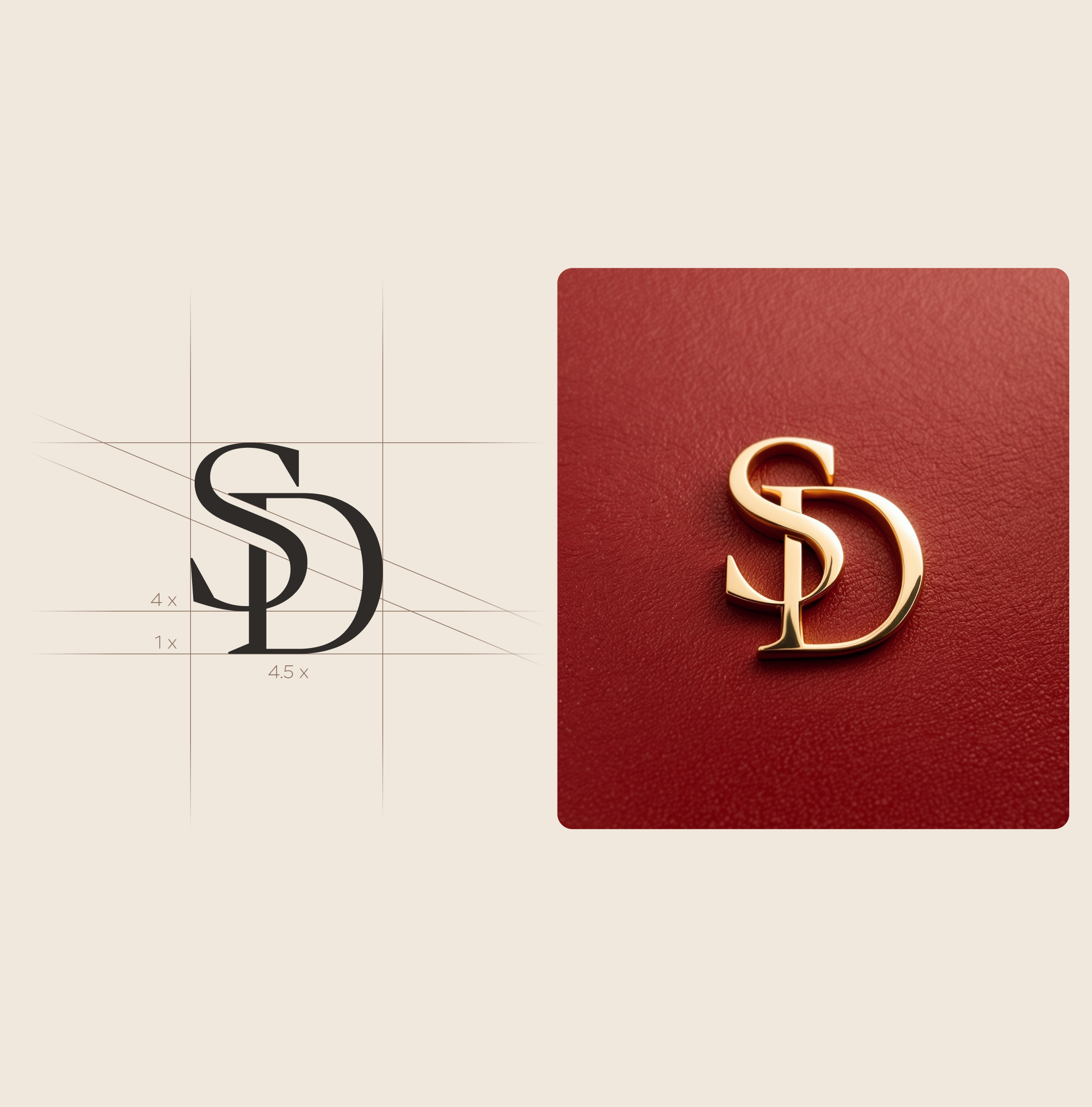Логотип построен на премиальных пропорциях: монограмма SD — главный акцент, двухстрочный вордмарк — сильная подпись. Такая иерархия делает знак узнаваемым и универсальным: он хорошо работает на разных носителях и остается читаемым даже в небольших размерах.