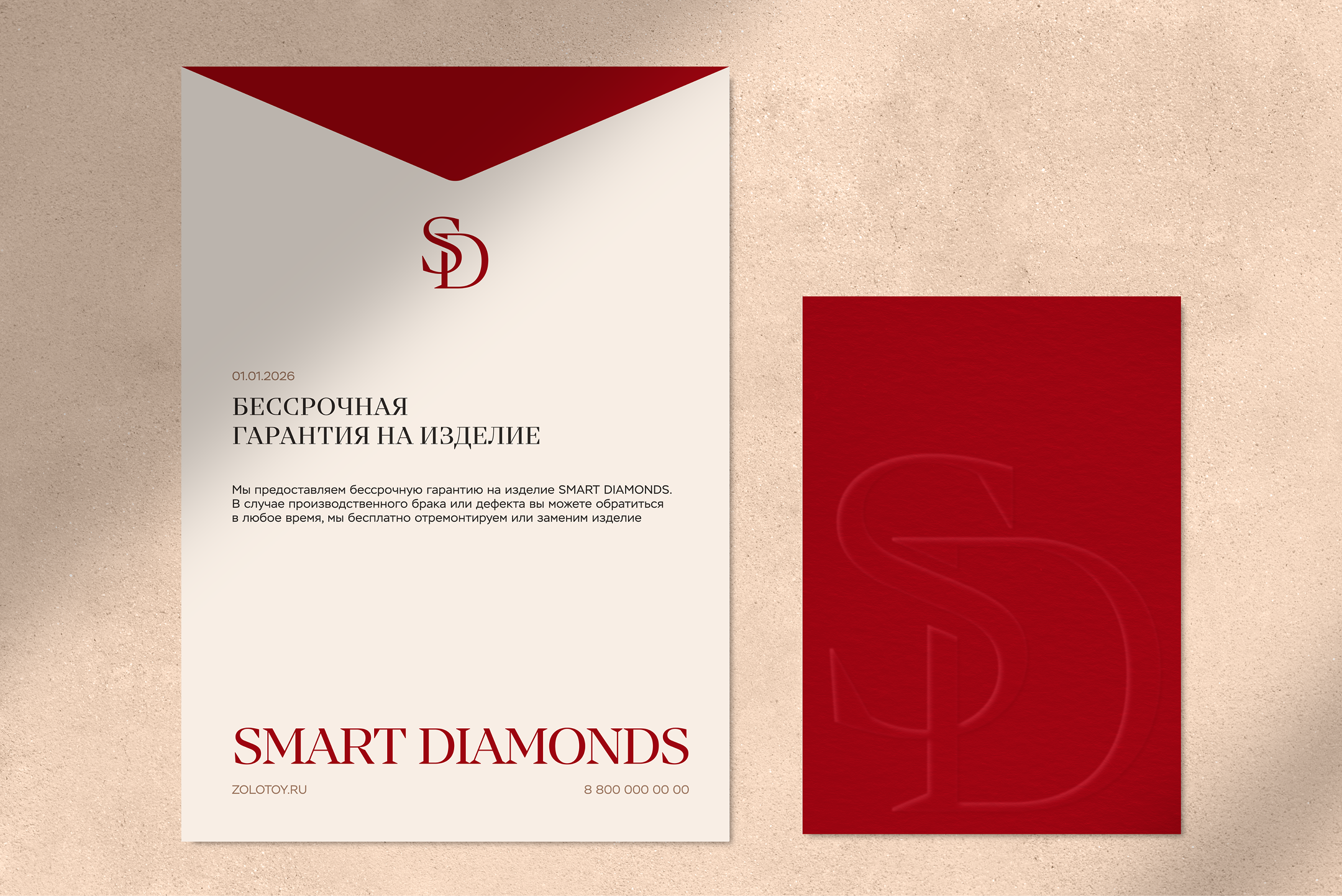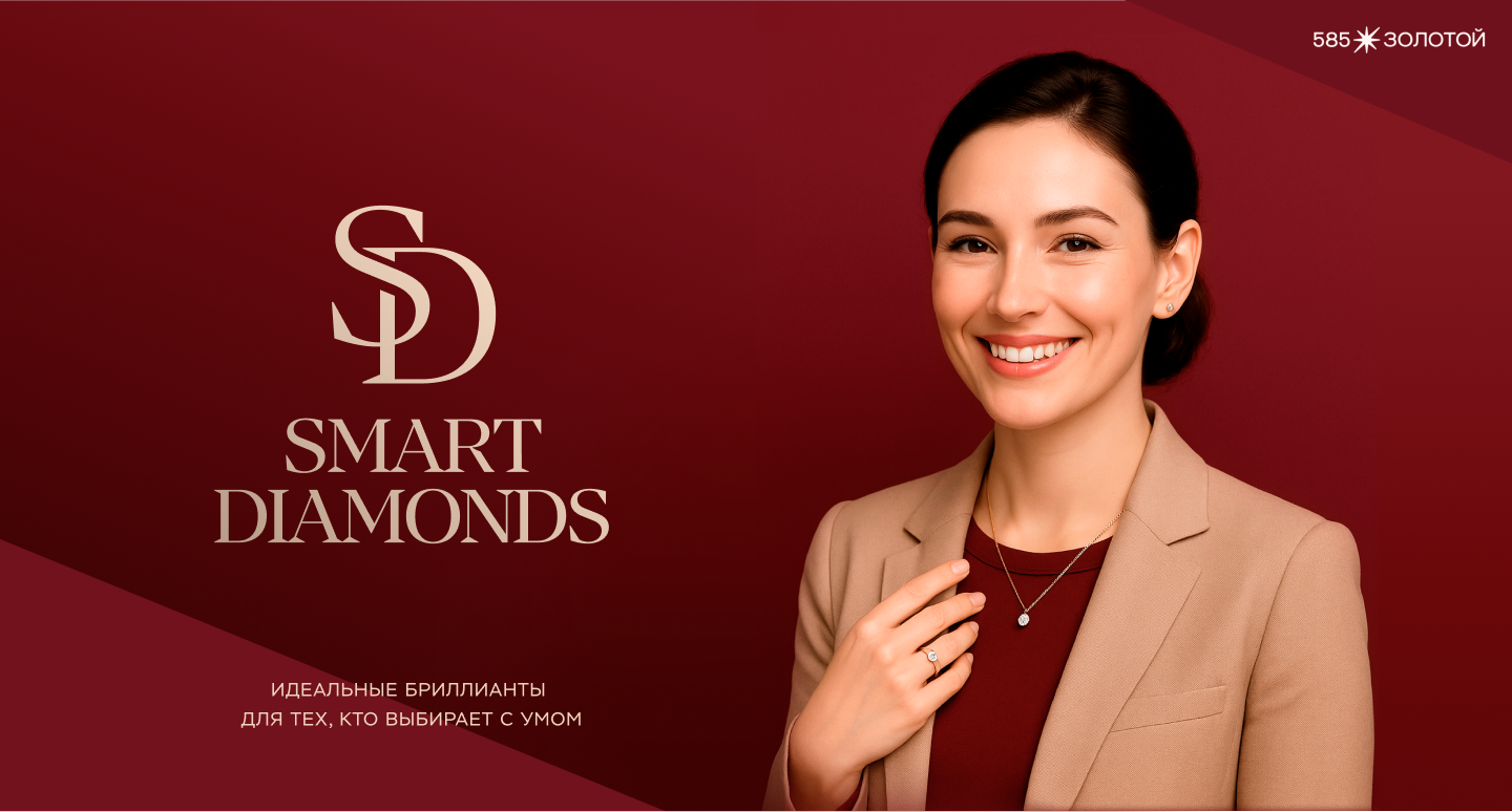 SMART DIAMONDS — капсульный бренд внутри «585 Золотой», выделенный в самостоятельную территорию. Анализ рынка показал, что ниша технологичного и интеллектуального ювелирного бренда в России почти свободна, поэтому визуальная система и тон бренда ориентированы на аудиторию 30+, ценящую инновации и осознанность.